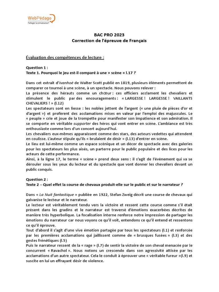 Sujets Corriges Du Bac Pro De Francais 2023 Metropole
